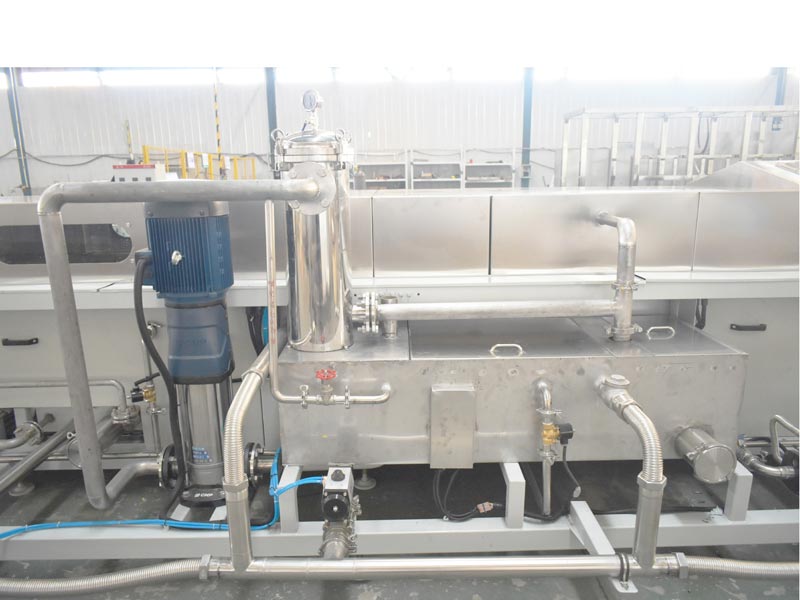 該設備為全自動高潔凈度清洗機,整機為網帶鏈條式傳動機構。采用超聲波清洗、人工高壓補洗、高壓噴淋清洗、慢拉脫水工位、高壓風切、人工補吹、干燥爐、風冷等工藝。該設備共5個工位:上料工位、超聲波清洗工位、人工高壓補洗工位、高壓噴淋清洗工位、慢拉脫水工位、高壓風切工位、人工補吹工位、干燥爐、風冷工位、下料工位。該設備清洗效果好、提高了工件的清潔度。該機結構設計及工藝安排合理、自動化程度高、清洗精度高,有效解決了此類工件的清洗難題。